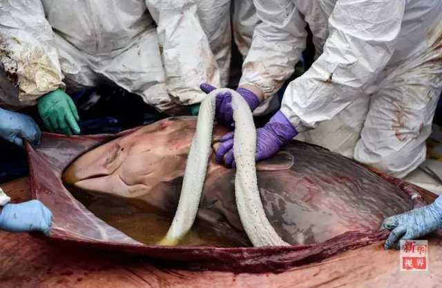随着解剖的进一步深入,团队惊奇地发现,这头抹香鲸体内还有个胎盘,似乎孕育着一个小生命。现场有人又怀揣着希望:有没有可能还活着?