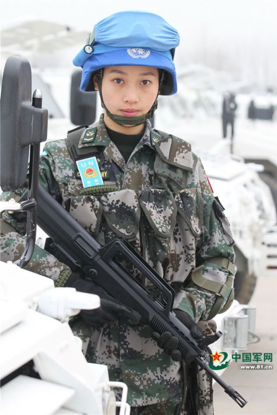 参加中国首支维和步兵营女子步兵班的闻静。