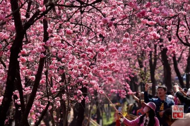 △游人在昆明圆通山公园拍摄盛开的樱花。新华社记者 蔺以光 摄