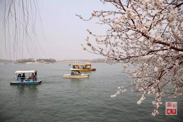 △游客们在北京颐和园赏花。新华社记者 金立旺 摄