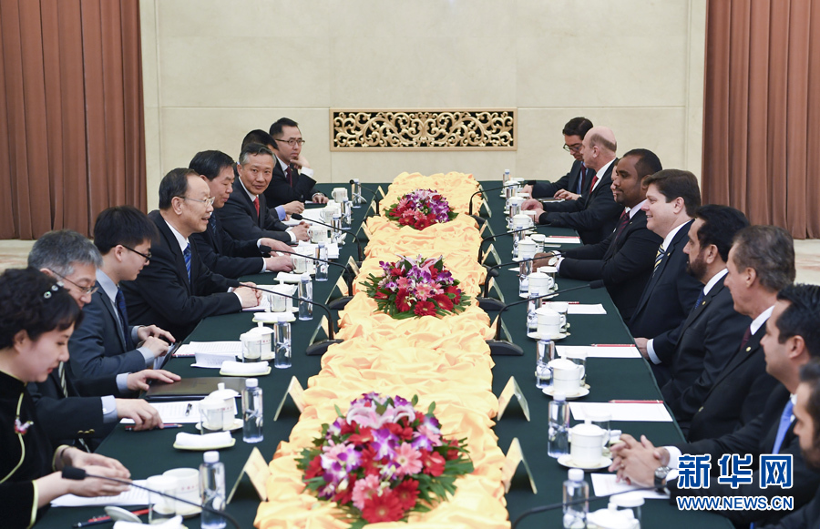 3月22日,中共中央书记处书记、全国政协副主席杜青林在北京会见巴西民主运动党众议院党团领袖罗西率领的该党干部考察团。 新华社记者张领摄