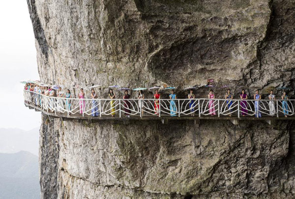 千米绝壁“秀”旗袍