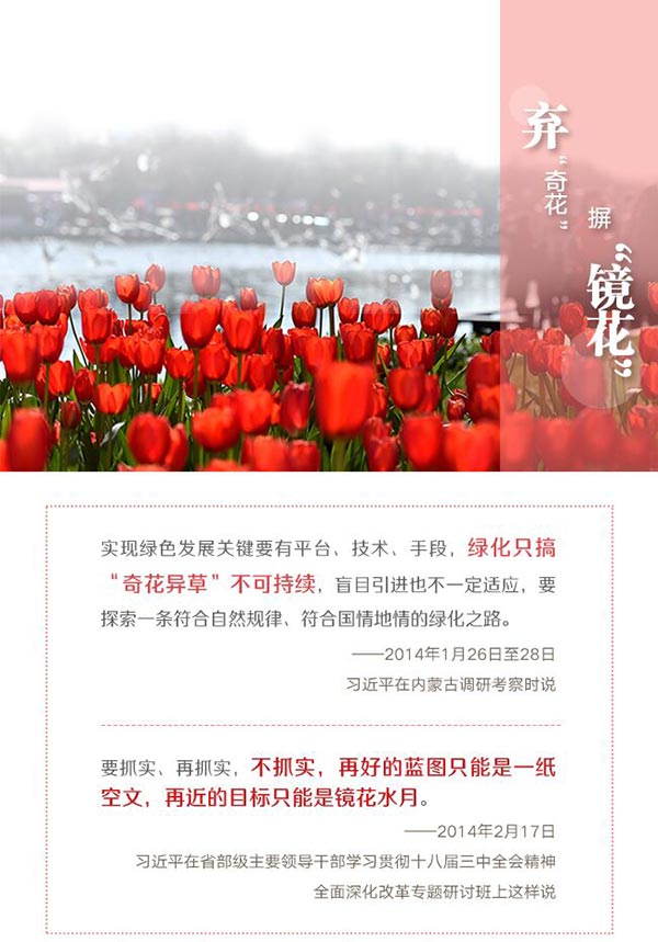 “人民对美好生活的向往就是我们的奋斗目标。”无论是育美花,还是摒“镜花”,为的都是这一庄严承诺。这正是习近平“花”之喻的深意。