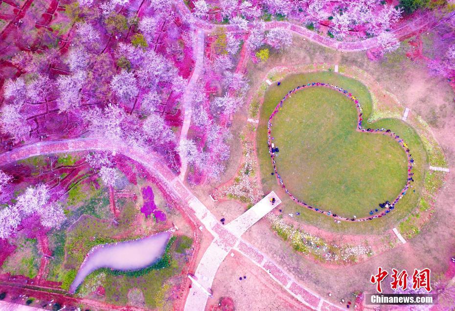 江西南昌樱花烂漫 现唯美“心形”草坪