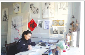空余时间阅读专业书籍是崔娟的习惯 墙上是她的绘画作品
