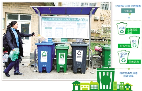 “这些年,北京已经完成了一批居住小区的垃圾分类硬件配套设施。”北京城市管理委员会相关负责人告诉记者,从小区延伸直到末端处理,进行全系统衔接,形成分类投放、分类收集、分类运输、分类处理的初步框架。北京初步形成覆盖16区县,由22家主体回收企业、15个分拣中心、4700多个回收站点构成的再生资源回收体系。
