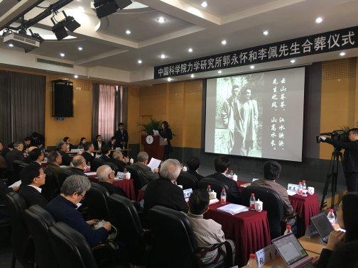 郭永怀先生英年早逝,为国捐躯,1988年,力学所特别制作了郭先生的塑像,接回了敬爱的郭所长,将他的骨灰安葬于塑像之下,今年他的夫人李佩先生去世之后,应李佩先生遗愿,今天,郭永怀、李佩两位先生的合葬仪式在北京举行,阔别近半个世纪的两位老人将共同长眠于苍松翠柏之下。