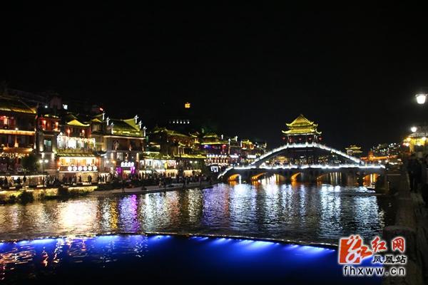 红网凤凰县分站4月7日讯(通讯员 张锋)4月3日,夜游湖南省凤凰古城旅游景区。沱江两岸,色彩斑斓,水中倒影,如幻如真。或实,或虚,或浓,或淡,别有韵味。如果说清晨的古城似一张水墨画,那么入夜的凤凰就是一张油画。