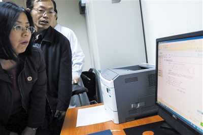 肿瘤医院,价监局的工作人员正在检查医院的短信通知平台。