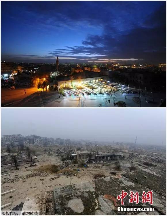 这组照片通过战争前后的对比,