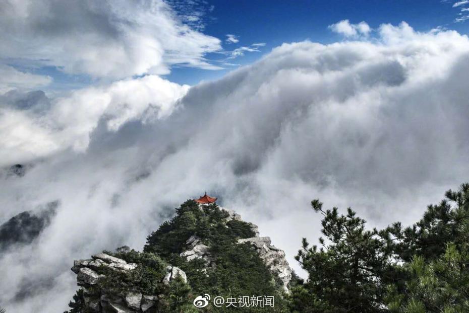 4月9日下午,江西庐山小天池山与大月山山峰聚集大片云雾,现壮丽瀑布云。云雾在峡谷中奔涌向前,腾空激荡,气势磅礴,蔚为壮观。(央视记者郭一淳 谢乃川)图片来源:央视新闻官方微博