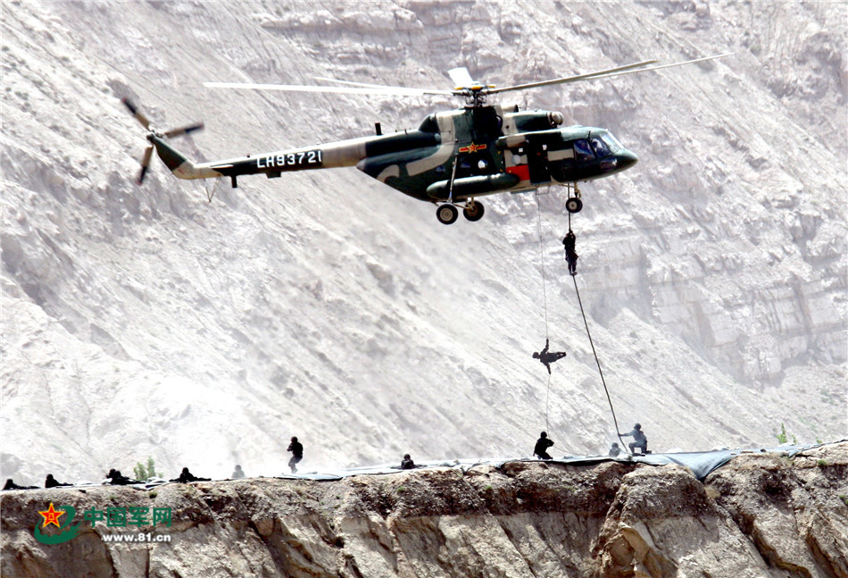 2011年5月,雪豹突击队在新疆喀什参加“天山-2号”上海合作组织成员国执法安全机关联合反恐演习。特约记者李光印 摄