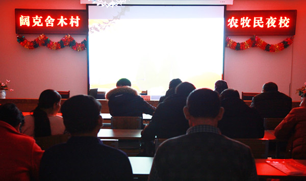 新疆阿勒泰地区富蕴县恰库尔图镇乔山拜村开展“农牧民夜校”科技培训。