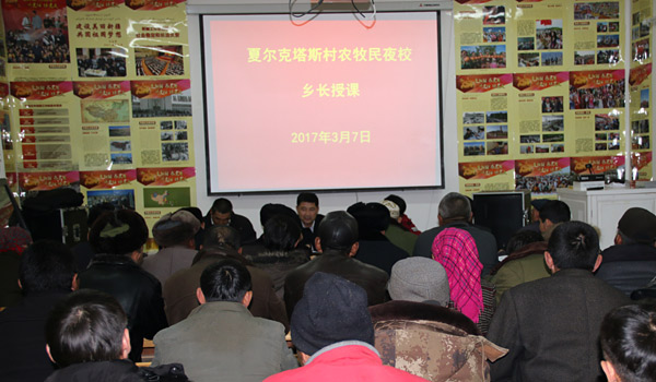 新疆阿勒泰地区青河县乡阿尕什敖包乡领导班子走进村站点进行“农牧民夜校”授课。
