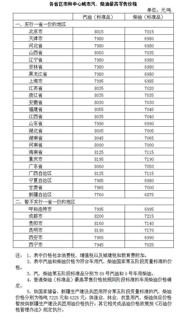 发改委称,根据近期国际市场油价变化情况,按照现行成品油价格形成机制,自2017年4月12日24时起,国内汽、柴油价格(标准品,下同)每吨分别提高200元和190元。调整后,各省(区、市)和中心城市汽、柴油最高零售价格见附表。相关价格联动及补贴政策按现行规定执行。