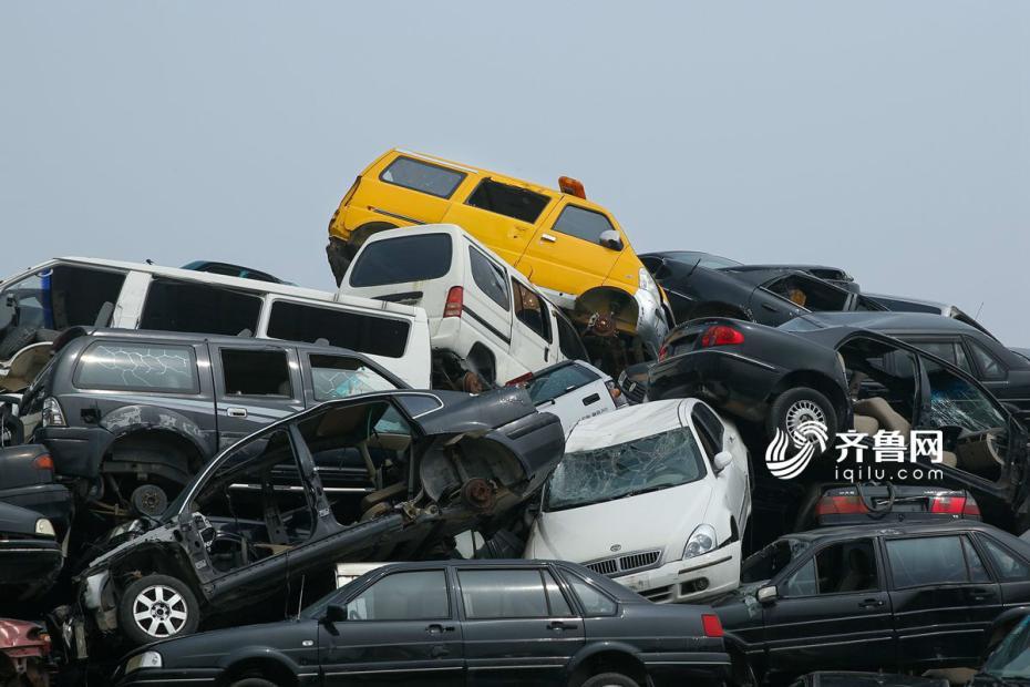 报废厂内摞成山的汽车。齐鲁网记者 尹承谦 摄 图片来源:齐鲁网
