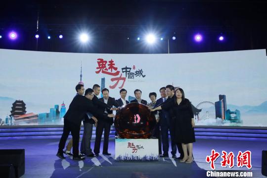 《魅力中国城》将从6月16日起每周五晚19:30-20:30登陆中央电视台财经频道,32个市长将登上电视荧屏,向世界推介中国城市的特色。图为启动仪式现场。 曾鼐 摄