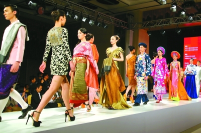 2014年,中国-东盟服饰文化展上的时装走秀。郭红松摄/光明图片