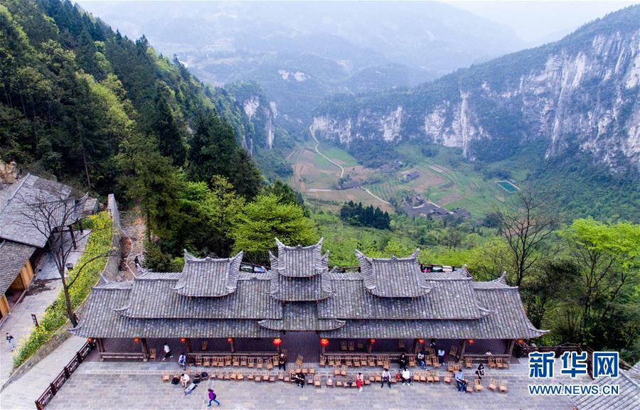 这是4月15日航拍的武隆区仙女山国家级旅游度假区天坑寨子景区。重庆市武隆区地处渝东南生态保护发展区,是喀斯特世界自然遗产地。武隆拥有仙女山国家森林公园、后坪天坑、芙蓉江等200多个景区。作为重庆旅游的名片,武隆受到中外游客的青睐。借助“一带一路”的国际交流平台,武隆区进一步加强《印象武隆》实景演出等在国内外的广泛宣传,加快融入国际旅游市场。新华社记者 刘潺 摄