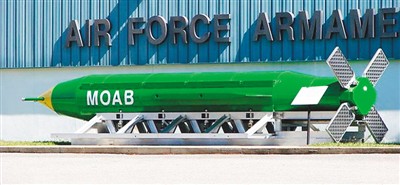 4月13日,美国国防部在一份声明中称,当晚美国战机向阿富汗一处“伊斯兰国”武装分子使用的隧道投放了GBU-43大型空爆炸弹。据悉,这一被称为“炸弹之母”的重型炸弹是美军现役威力最大的常规武器之一,首次被用于实战当中,炸死至少36名阿富汗境内“伊斯兰国”武装分子。