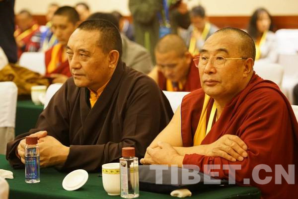 中国佛教协会副会长班禅额尔德尼•确吉杰布在会议现场。