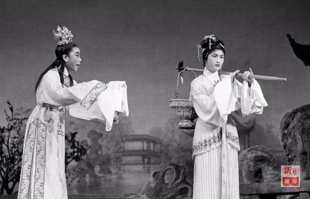 徐玉兰(左)与王文娟出演越剧《关汉卿》(1958年发)。新华社记者 夏道陵 摄