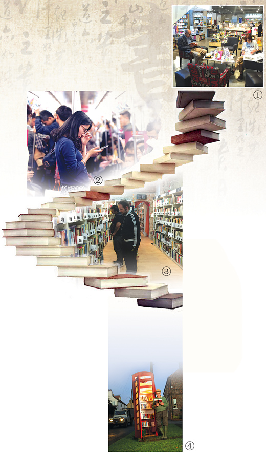 图①:读者在墨西哥最大私营连锁书店“甘地书店”内阅读。