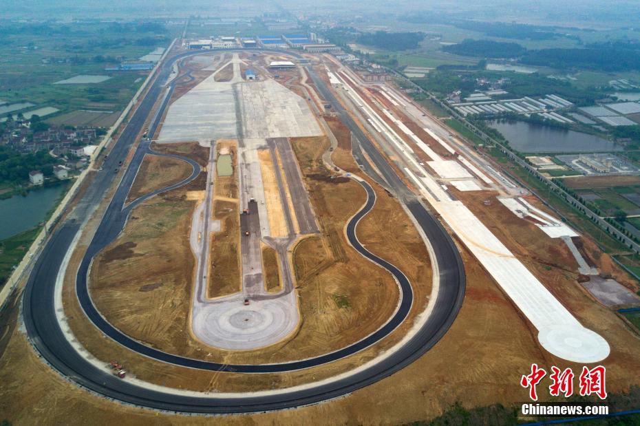 4月25日,位于江苏南京高淳,沥青摊铺完工的中国首座“中国造”试车场。试车场是新型汽车和特殊车辆在研发阶段进行质量、性能和耐久性测试的大型专用基础设施,以往国内的试车场高速环道沥青摊铺都由德国、日本等地的外国建筑公司运用特殊的沥青摊铺设备进行施工。而在南京福特试车场的施工中,中铁四局在国内首次引进国际领先的高速环道曲面摊铺设备,并自主研发出计算机建模测量曲面摊铺厚度、熨平板加热处理沥青施工纵缝等新技术工艺,打破了国外企业长期在曲面沥青摊铺领域的技术垄断,真正实现了试车场高速环道的“中国制造”。据承建单位中铁四局介绍,该试车场高速环道总造价约4600万元,全长3036.684米,弯道段呈半球型曲面,垂直高差约5米,设计最高车速160公里每小时,沥青摊铺总厚度约18厘米,预计于2017年7月正式投运。中新社记者 泱波 摄