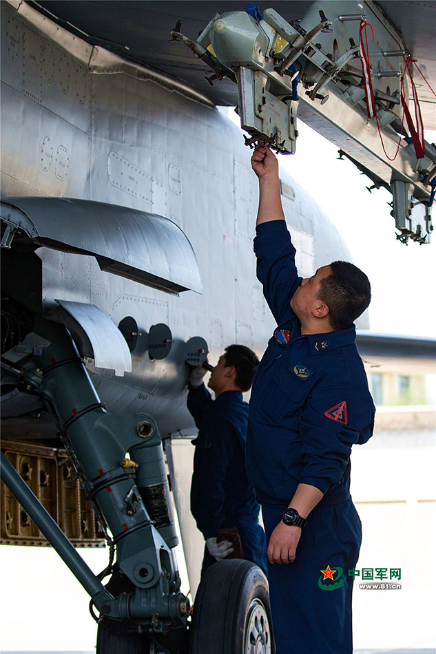 检查武器挂架。孙振东摄影