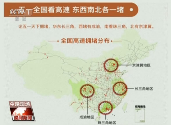 而从区域分布上看,车流较大的高速主要分布在京津冀、长三角、珠三角、成渝四大区域。