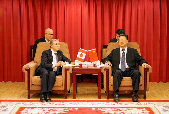 中国绿色时报4月26日报道(记者 王苒) 4月24日,国家林业局副局长彭有冬在北京会见了加拿大国际贸易部部长弗朗索瓦·尚帕涅一行。双方就森林可持续经营、林业应对气候变化、木材贸易、绿色建筑及相关技术和人才培训、投资等共同关心的问题进行了商谈。