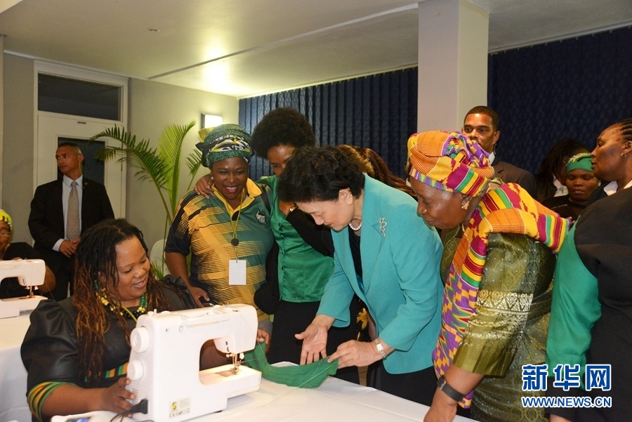 4月26日,中国国务院副总理刘延东(中)在南非德班出席全国妇联向非国大妇联捐赠缝纫机仪式。 新华社记者田弘毅摄