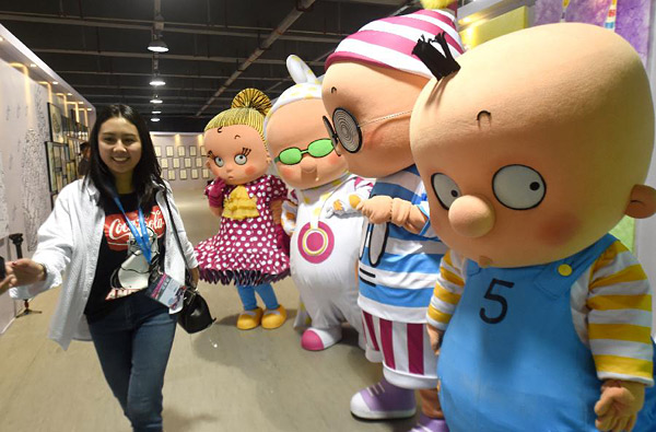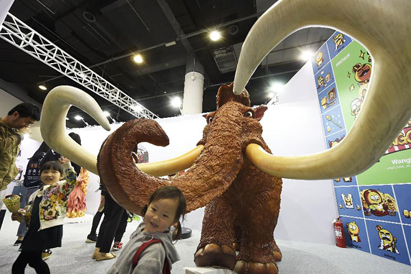 4月26日,小朋友被动漫节展厅里巨大的卡通猛犸象所吸引。当日,第13届中国国际动漫节在浙江杭州滨江白马湖畔开幕,共有来自82个国家和地区的动漫企业、专业机构和专业人士参展参赛参会,其国际化水平创下新高。本届动漫节为期6天,共设置1个主会场、16个分会场,将举行59项活动,参展企业中既有迪士尼、东方梦工厂、BBC儿童频道、孩子宝等国际动漫和玩具业领军企业,也有阿里、腾讯、网易等知名互联网企业。