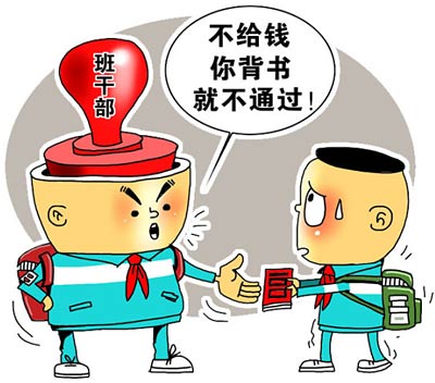 上体育课想踢球,得给队长、副队长送钱;学习委员监督同学背课文,交5元钱就让过;同学之间抄作业,每人每次收费5元……