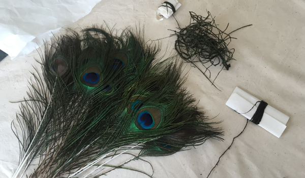 图为修复师们自制的孔雀羽丝线 /新华网 王莹摄