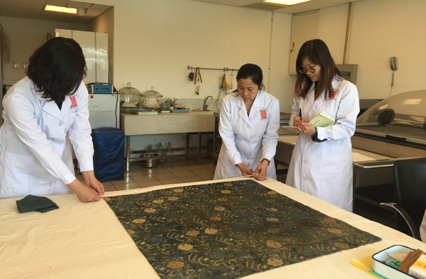 首都博物馆的纺织品文物修复室成立于2003年,春去冬来至今已14载。据傅萌介绍,这些年她们共修复了千余件纺织品文物,而工作室目前只有五位修复师。与青铜、陶瓷等文物相比,纺织品文物的修复周期很慢,有些文物修复动辄需要一年时间。修复人员的短缺在这里显得格外突出。