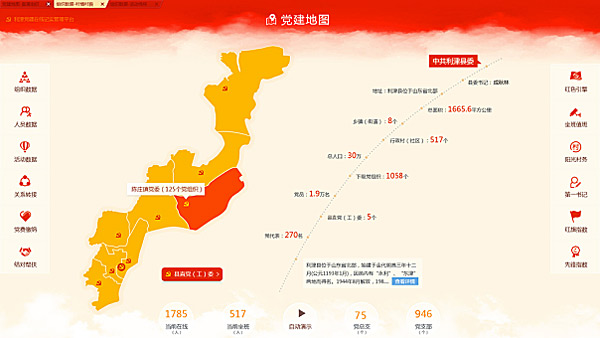 为贯彻落实全面从严治党要求,着力解决基层党建工作重点难点问题,山东省利津县依托现代信息技术和“互联网+党建”的大数据管理模式,建立了集党建数据收集分析、基层党务在线办理、村级组织活动实时监控、积分排名自动呈现、党务村务实时公开等主要功能于一体的“党建在线”平台,提升了基层党建工作整体水平。