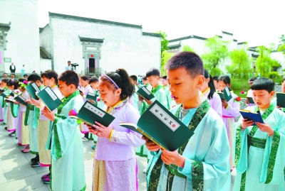 4月23日,500多名小学生在江西婺源朱熹故居参加“诵读国学经典”主题活动。 光明图片/视觉中国