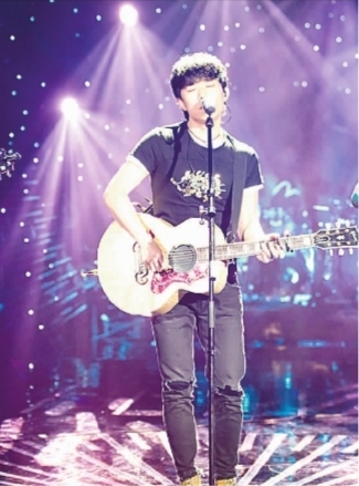 歌手赵雷凭借一首原创歌曲《成都》走红。图为赵雷在演唱中。光明图片/视觉中国