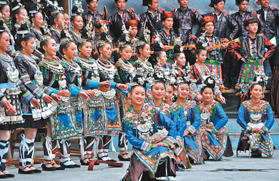 肇兴不仅是鼓楼之乡,而且是歌舞之乡。肇兴侗寨与自然和谐相处,这里的人们也被自然赋予了无穷的生活智慧和无限的艺术灵感。“饭养身,歌养心。”侗家人世代都爱歌、学歌、唱歌,而以多声部、无指挥、无伴奏为主要特点的侗族大歌,模拟鸟叫虫鸣、高山流水等自然之音,歌唱自然、劳动、爱情及友谊。1986年,在法国巴黎金秋艺术节上,侗族大歌一经亮相,便技惊四座,被认为是“清泉般闪光的音乐,掠过古梦边缘的旋律”。2009年,侗族大歌被列入联合国教科文组织《人类非物质文化遗产代表作名录》。