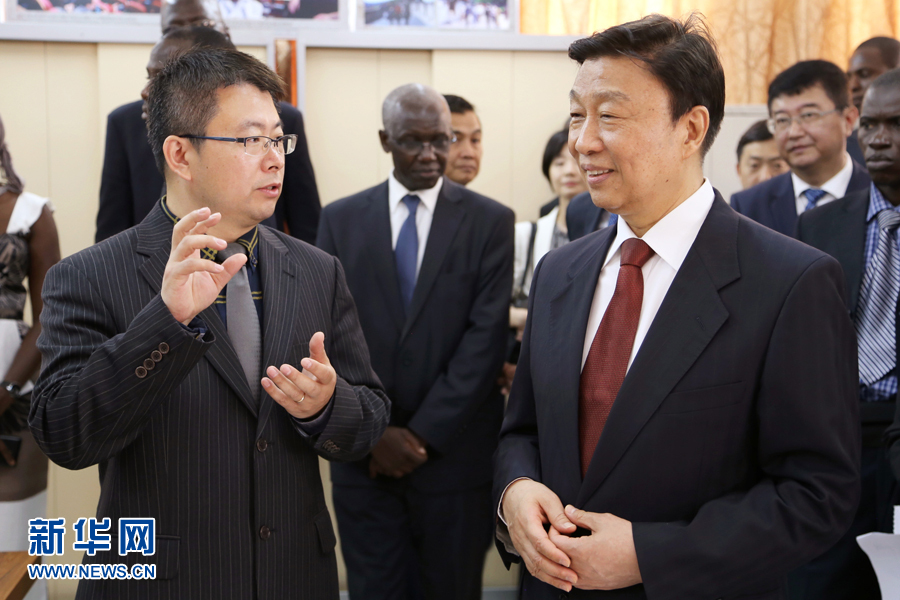 5月8日,在塞内加尔达喀尔,正在塞内加尔访问的中国国家副主席李源潮(前右)参观达喀尔大学孔子学院,并出席新教学楼揭牌仪式。新华社记者邢建桥摄