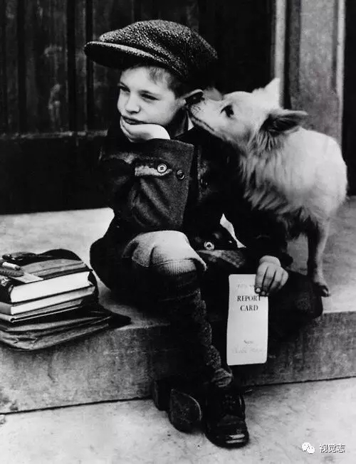一个孩子闷闷不乐地坐在街上,而他的狗狗把湿湿的鼻子蹭过来,“把你的烦恼都舔走哦!” ▼