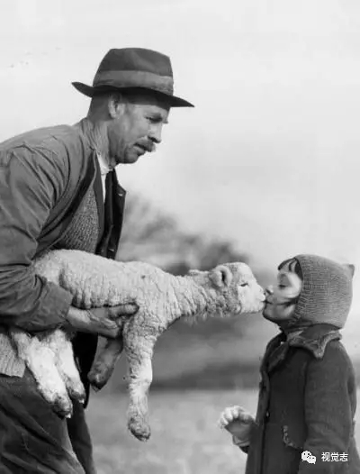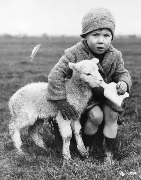 田野里一个孩子正在给没了妈妈的羊羔喂奶 ▼