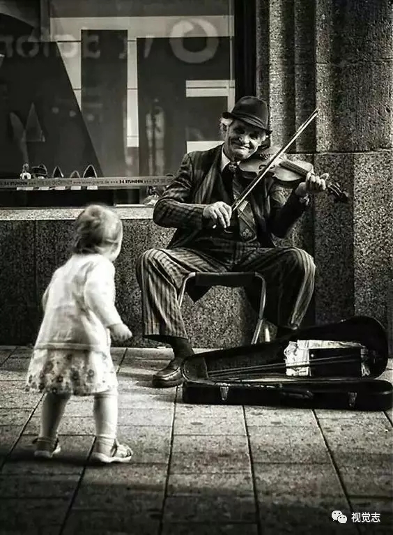 流浪歌手面前,一个孩子跟着音乐节奏摆动一老一少,如此美好 ▼