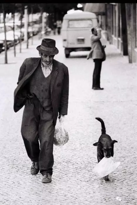 一只老狗和买完菜的主人慢慢回家 ▼