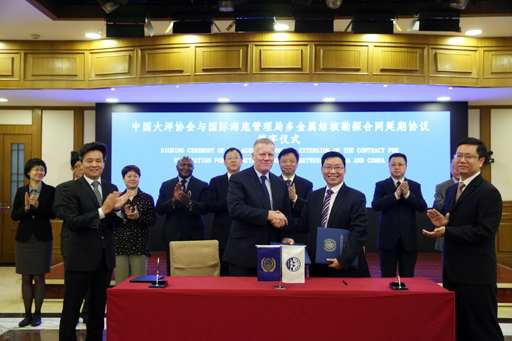 中国海洋报讯(记者 方正飞)5月11日,国家海洋局局长王宏在京会见国际海底管理局秘书长迈克·劳治一行。随后,在王宏局长见证下,中国大洋矿产资源研究开发协会秘书长刘峰和国际海底管理局秘书长迈克·劳治代表双方签署“国际海底多金属结核矿区勘探合同延期协议”。国家海洋局副局长林山青陪同会见并参加签字仪式。