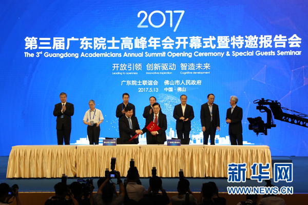 新华网广州5月13日电(底东娜、高立)由广东院士联谊会、佛山市人民政府主办的第三届广东院士高峰年会13日上午在佛山开幕,50余位在粤和粤籍院士携团队参加。堪称“中国最强大脑”的两院院士们围绕大数据、数字化网络、知识产权保护、人工智能等热点话题开展学术研讨,为广东创新驱动发展把脉支招。