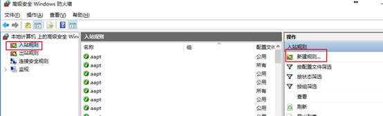 4、点击入站规则,新建规则