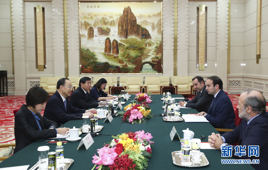 5月16日,中共中央书记处书记、全国政协副主席杜青林在北京会见阿根廷共和国方案党总书记金塔纳。 新华社记者 谢环驰 摄