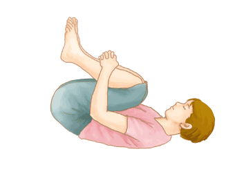 躺在地上,两脚屈膝,两手环抱住小腿,抬头收腹拱背,身体往后从尾椎、腰椎、胸椎一节一节碰触地面,如此前后滚过来滚过去。要看自己身体状况,做不到不能太勉强。